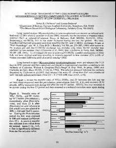 | 12228 | Chronic Acidosis in the Long-Horned Sculpin (Myoxocephalus octodecimspinosus): Effect of Low External Sodium or Chloride on Acid-Base Transfers Across the Gills | | - Claiborne, James B. Claiborne