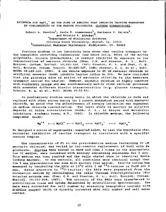 | 12169 | Evidence for HgCl3- as the Form of Mercury that Inhibits Taurine Transport in Coelomocytes of the Marine Polychaete, Glycera Dibranchiata | | - Preston, Robert L. Preston