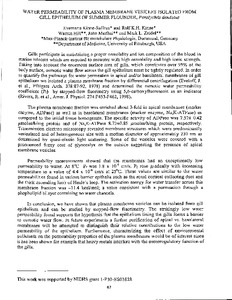 | 12515 | Water Permeability of Plasma Membrane Vesicles Isolated from Gill Epithelium of Summer Flounder, Paralychtis dendatus | | - Kinne-Saffran, Evamaria Kinne-Saffran