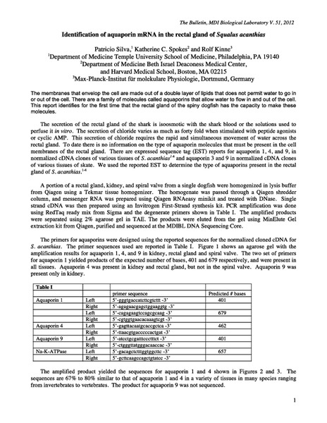 “Identification of Aquaporin mRNA in the Rectal Gland of Squalus acanthias,” MDI Biological Laboratory, accessed December 14, 2025, https://digitalarchive.mdibl.org/items/show/1167.Item 12900