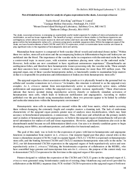 “Novel Bioinformatics Tools for Analysis of Gene Expression in the Skate, Leucoraja erinacea,” MDI Biological Laboratory, accessed December 14, 2025, https://digitalarchive.mdibl.org/items/show/1196.Item 12940