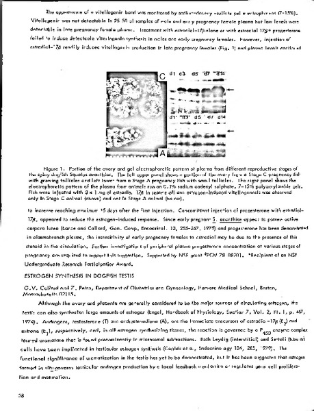 Estrogen Synthesis in Dogfish Testis Identifier: 11345 Title: Estrogen Synthesis in Dogfish Testis Author: Gloria, V. Collard, Harvard University Z. Petro, Harvard University Date: 1979 Species: Squalus acanthias Common Name: Spiny dogfish Type: Bulletin, Report Bulletin: Volume 19 - 1979 Report: 23 Citation “Estrogen Synthesis in Dogfish Testis,” MDI Biological Laboratory, accessed December 19, 2025, https://digitalarchive.mdibl.org/items/show/1226.Item 11345 Save this item as a PDF file