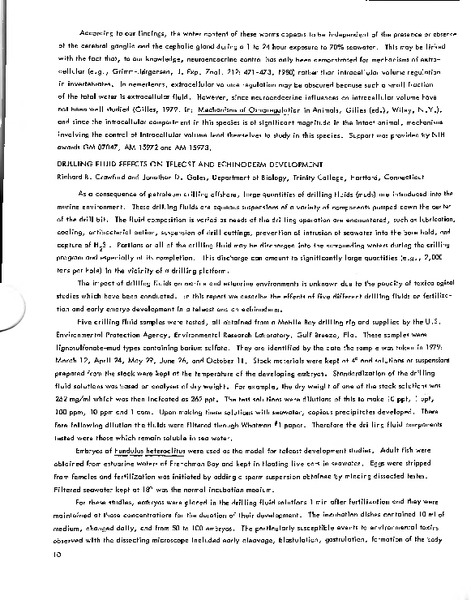 Drilling Fluid Effects on Teleost and Echinoderm Development Identifier: 11383 Title: Drilling Fluid Effects on Teleost and Echinoderm Development Author: Richard B. Crawford, Trinity College Jonathan D. Gates, Trinity College Date: 1980 Species: Echinarachnius parma Fundulus heteroclitus Common Name: Sand dollar Mummichog Type: Bulletin, Report Bulletin: Volume 20 - 1980 Report: 6 Citation “Drilling Fluid Effects on Teleost and Echinoderm Development,” MDI Biological Laboratory, accessed December 14, 2025, https://digitalarchive.mdibl.org/items/show/1264.Item 11383 Save this item as a PDF file