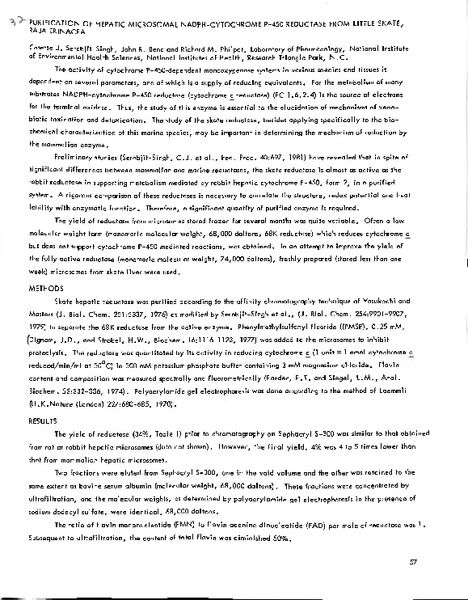 “Purification of Hepatic Microsomal NADPH-Cytochrome P-450 Reductase from Little Skate, Raja erinacea,” MDI Biological Laboratory, accessed December 15, 2025, https://digitalarchive.mdibl.org/items/show/1352.Item 11471