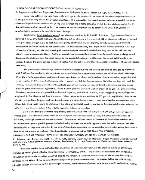 Cleavage of Artificially Constricted Sand Dollar Eggs Identifier: 11552 Title: Cleavage of Artificially Constricted Sand Dollar Eggs Author: R. Rappoport, Union College Barbara N. Rappoport, Union College Date: 1983 Species: Echinarachnius parma Common Name: Sand dollar Type: Bulletin, Report Bulletin: Volume 23 - 1983 Report: 7 Citation “Cleavage of Artificially Constricted Sand Dollar Eggs,” MDI Biological Laboratory, accessed December 14, 2025, https://digitalarchive.mdibl.org/items/show/1433.Item 11552 Save this item as a PDF file