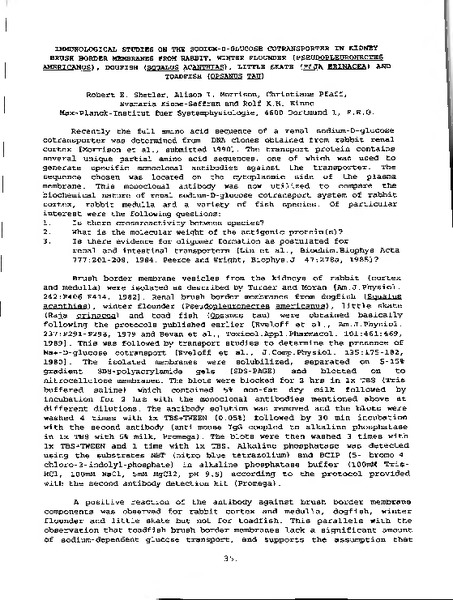 “Immunological Studies on the Sodium-D-Glucose Cotransporter in Kidney Brush Border Membranes from Rabbit, Winter Flounder (Pseudopleuronectes americanus), Dogfish (Squalus acanthias), Little Skate (Raja erinacea) and Toadfish (Opsanus tau),” MDI Biological Laboratory, accessed December 14, 2025, https://digitalarchive.mdibl.org/items/show/1615.Item 11973