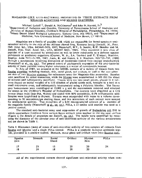 “Magainin-Like Anti-Bacterial Properties of Tissue Extracts from Squalus acanthias and Myxine glutinosa,” MDI Biological Laboratory, accessed December 22, 2025, https://digitalarchive.mdibl.org/items/show/1801.Item 11954
