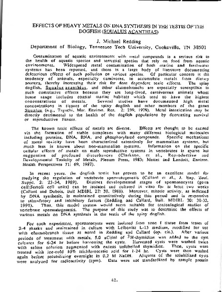 Effects of Heavy Metals on DNA Synthesis in the Testis of the Dogfish (Squalus acanthias)