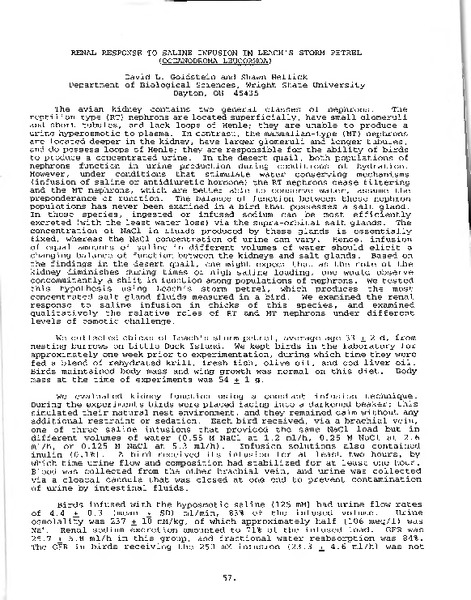 Renal Response to Saline Infusion in Leach's Storm Petrel (Oceanodroma leucorhoa)