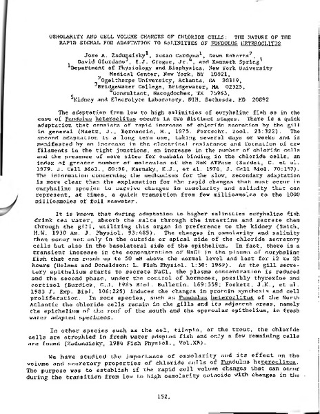 “Osmolarity and Cell Volume Changes of Chloride Cells: The Nature of the Rapid Signal for Adaptation to Salinities of Fundulus heteroclitus,” MDI Biological Laboratory, accessed December 14, 2025, https://digitalarchive.mdibl.org/items/show/1869.Item 12075