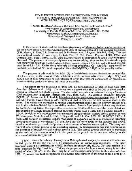 “Divalent Electrolyte Excretion in the Marine Teleost, Myoxocephalus Octodecimspinosus. with Reference to Urinary Precipitates,” MDI Biological Laboratory, accessed December 14, 2025, https://digitalarchive.mdibl.org/items/show/1918.Item 12124