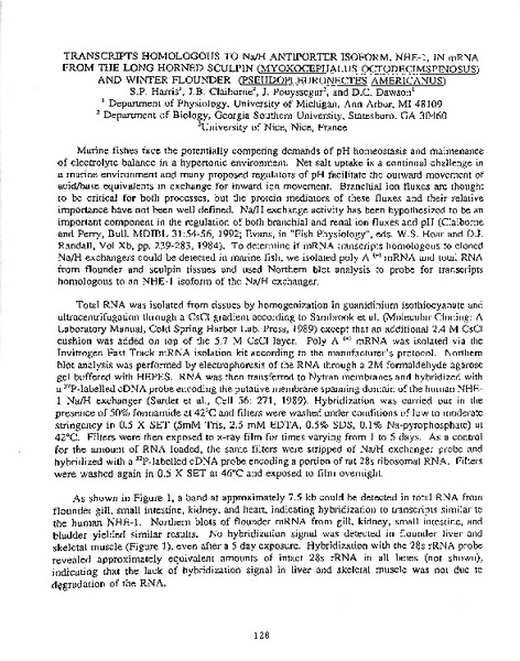 Transcript Homologous to Na/H Antiporter isoform, NHE-1 in mRNA from the Long Horned Sculpin (Myoxocephalus octodecimspinosus) and Winter Flounder (Pseudopleuronectes americanus)