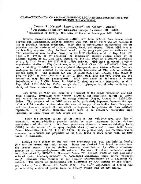 “Characterization of a Mannose-Binding Lectin in the Serum of the Spiny dogfish (Squalus acanthias),” MDI Biological Laboratory, accessed December 14, 2025, https://digitalarchive.mdibl.org/items/show/1946.Item 12152