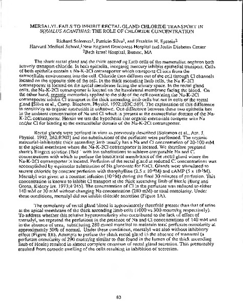 “Mersalyl Fails to Inhibit Rectal Gland Chloride Transport in Squalus acanthias: The Role of Chloride Concentration,” MDI Biological Laboratory, accessed December 15, 2025, https://digitalarchive.mdibl.org/items/show/1973.Item 12179