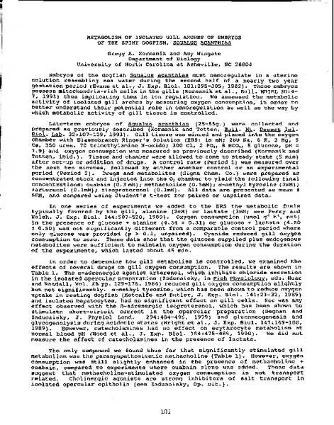 Metabolism of Isolated Gill Arches of Embryos of the Spiny dogfish, Squalus acanthias