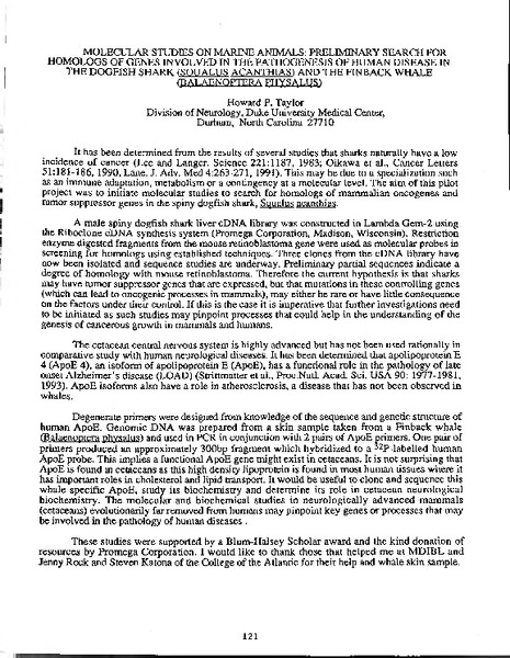 “Molecular Studies on Marine Animals: Preliminary Search for Homologs of Genes Involved in the Pathogenesis of Human Disease in the Dogfish Shark (Squalus acanthias) and the Finback Whale (Balaenoptera physalus),” MDI Biological Laboratory, accessed December 14, 2025, https://digitalarchive.mdibl.org/items/show/1992.Item 12198