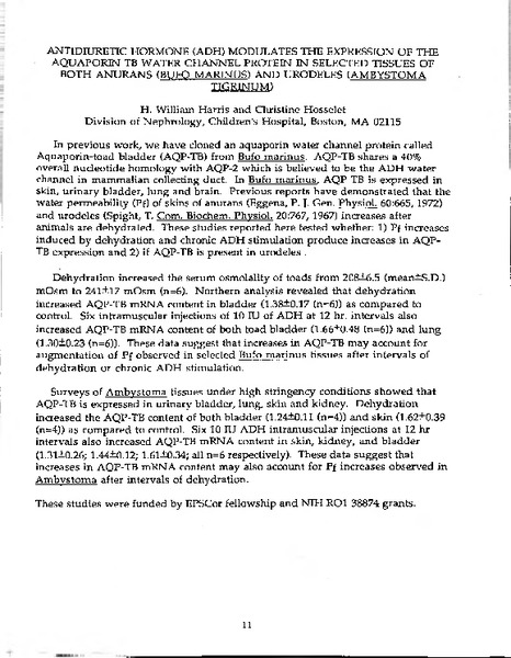 “Antidiuretic Hormone (ADH) Modulates the Expression of the Aquaporin-TB Water Channel Protein in Selected Tissues of Both Anurans (Bufo marinus) and Urodeles (Ambystoma tigrinum),” MDI Biological Laboratory, accessed December 14, 2025, https://digitalarchive.mdibl.org/items/show/2001.Item 12207