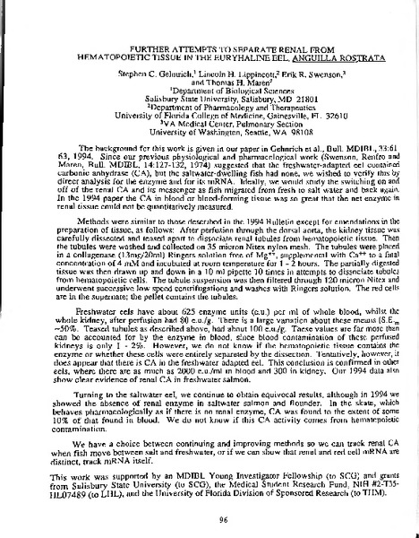 Further Attempts to Separate Renal from Hematopoietic Tissue in the Euryhaline Eel, Anguilla rostrata