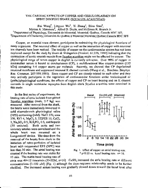 The Cardiac Effects of Copper and Ceruloplasmin on Spiny dogfish Shark (Squalus acanthias)