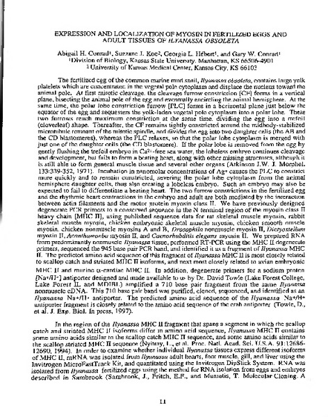 Expression and Localization of Myosin in Fertilized Eggs and Adult Tissues of Ilyanassa obsoleta