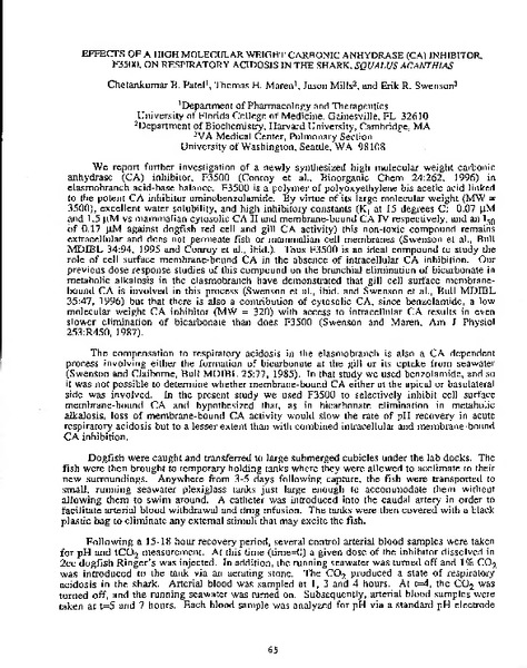 “Effects of a High Molecular Weight Carbonic Anhydrase (CA) Inhibitor, F3500, on Respiratory Acidosis in the Shark, Squalus acanthias,” MDI Biological Laboratory, accessed December 14, 2025, https://digitalarchive.mdibl.org/items/show/2171.Item 12332