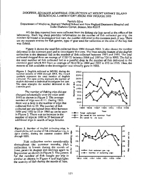 Dogfish, Squalus acanthias, Collection at Mount Desert Island Biological Laboratory from 1984 through 1995