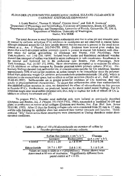 Flounder (Pleuronectes americanus) Renal Sulfate Clearance is Carbonic Anhydrase Dependent