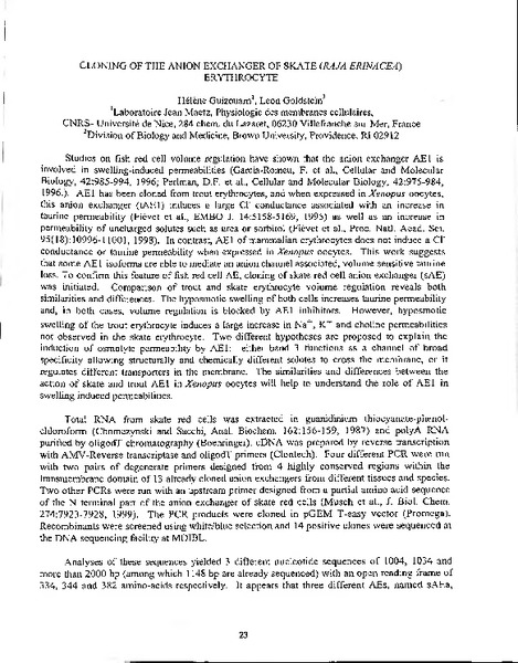 “Cloning of the Anion Exchanger of Skate (Raja erinacea) Erythrocyte,” MDI Biological Laboratory, accessed December 14, 2025, https://digitalarchive.mdibl.org/items/show/2275.Item 12494
