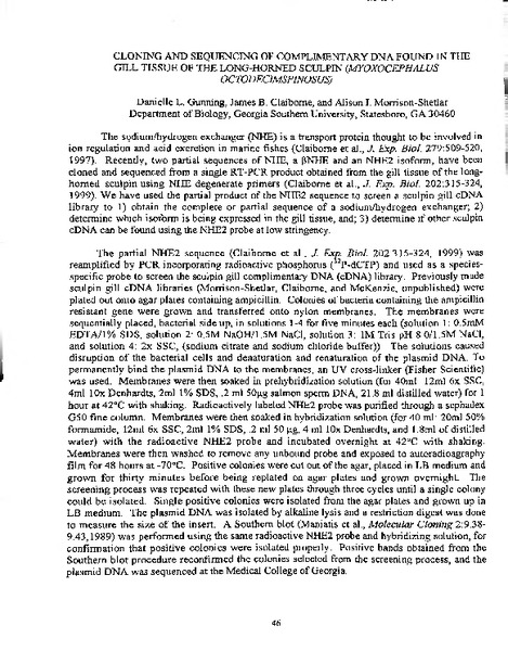 Cloning and Sequencing of Complimentary DNA Found in the Gill Tissue of the Long-Horned Sculpin (Myoxocephalus octodecimspinosus)