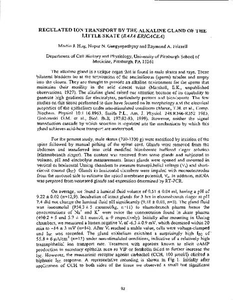 Regulated Ion Transport by the Alkaline Gland of the Little Skate (Raja ericea)