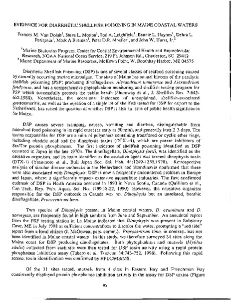 Evidence for Diarrhetic Shellfish Poisoning in Maine Coastal Waters