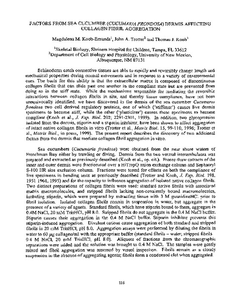 “Factors from Sea Cucumber (Cucumaria frondosa) Dermis Affecting Collagen Fibril Aggregation,” MDI Biological Laboratory, accessed December 15, 2025, https://digitalarchive.mdibl.org/items/show/2318.Item 12537