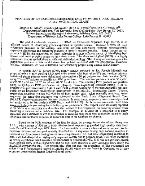 “Analysis of 172 Expressed Sequence Tags from the Shark (Squalus acanthias) Rectal Gland,” MDI Biological Laboratory, accessed December 14, 2025, https://digitalarchive.mdibl.org/items/show/2320.Item 12539