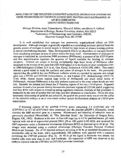 “Analysis of the Goldfish (Carassius auratus) Aromatase (P450ARIM) Gene Promoters by Green Fluorescent Protein (GFP) Expression in Living Zebrafish (Danio rerio) Embryos,” MDI Biological Laboratory, accessed December 14, 2025, https://digitalarchive.mdibl.org/items/show/2346.Item 12443