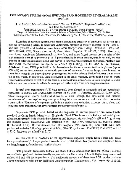 Preliminary Studies of Passive Urea Transporters in Several Marine Species
