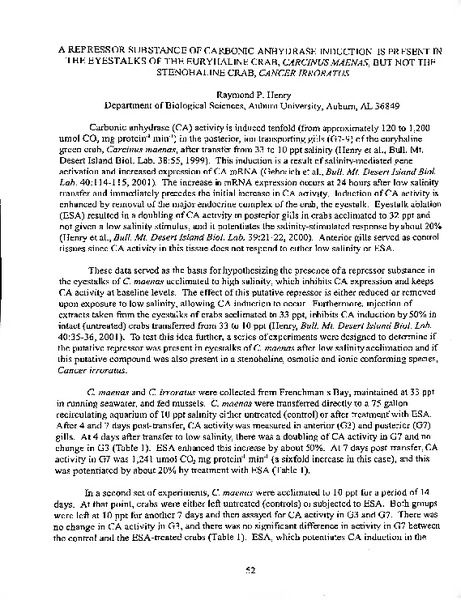 “A Repressor Substance of Carbonic Anhydrase Induction is Present in the Eyestalks of the Euryhaline Crab, Carcinus maenas, but not the Stenohaline Crab, Cancer irroratus,” MDI Biological Laboratory, accessed January 28, 2026, https://digitalarchive.mdibl.org/items/show/2415.Item 12633