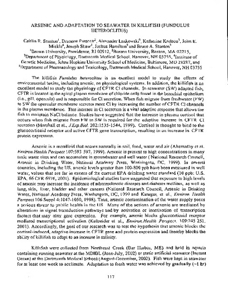 Arsenic and Adaptation to Seawater in Killifish (Fundulus heteroclitus)