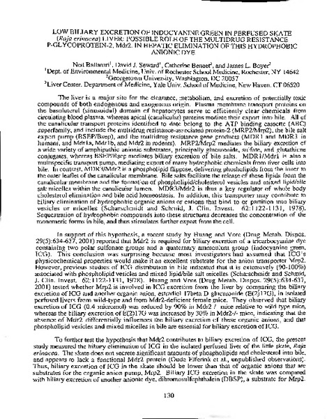 “Low Biliary Excretion of Indocyanine Green in Perfused Skate (Raja erinacea) Liver: Possible Role of the Multidrug Resistance P-Glycoprotein-2, Mdr2, in Hepatic Elimination of This Hydrophobic Anionic Dye,” MDI Biological Laboratory, accessed December 22, 2025, https://digitalarchive.mdibl.org/items/show/2501.Item 12719