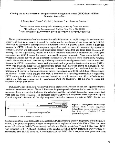 “Cloning the cDNA for serum- and glucocorticoid-regulated kinase (SGK) from killifish, Fundulus heteroclitus,” MDI Biological Laboratory, accessed December 19, 2025, https://digitalarchive.mdibl.org/items/show/2584.Item 12802