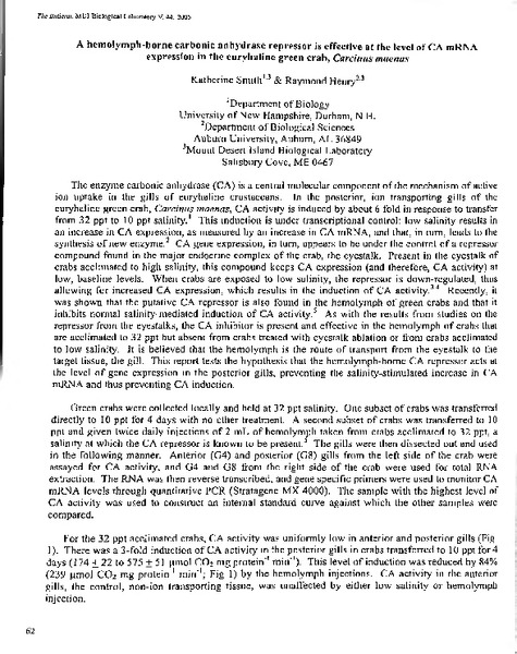 “A Hemolymph-Borne Carbonic Anhydrase Repressor is Effective at the Level of CA mRNA Expression in the Euryhaline Green Crab, Carcinus maenas,” MDI Biological Laboratory, accessed January 28, 2026, https://digitalarchive.mdibl.org/items/show/2592.Item 12810