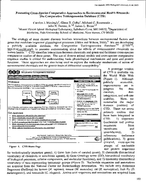 “Promoting Cross-Species Comparative Approaches to Environmental Health Research: The Comparative Toxicogenomics Database (CTD),” MDI Biological Laboratory, accessed December 23, 2025, https://digitalarchive.mdibl.org/items/show/2607.Item 12825