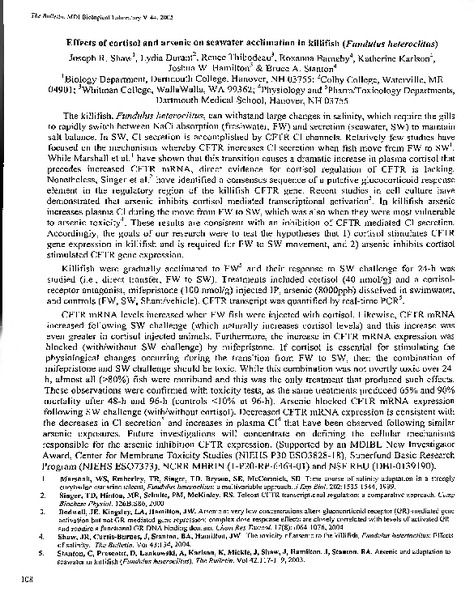 Effects of Cortisol and Arsenic on Seawater Acclimation in Killifish (Fundulus heteroclitus)