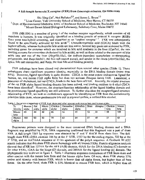 “A Full-Length Farnesoid X Receptor (FXR) from Leucoraja erinacea, the Little Skate Skate Xenopus,” MDI Biological Laboratory, accessed January 28, 2026, https://digitalarchive.mdibl.org/items/show/2615.Item 12833
