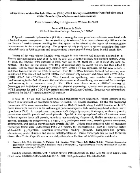 “Suppression subtractive hybridization (SSH) cDNA library construction from fuel oil treated winter flounder (Pseudoplueronectes atnericanus),” MDI Biological Laboratory, accessed December 23, 2025, https://digitalarchive.mdibl.org/items/show/2616.Item 12834