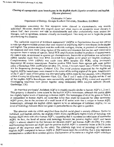 “Cloning of Aquaporinle Gene Homologues in the Dogfish Shark (Squalus acanthias) and Hagfish (Myxine glutinosa),” MDI Biological Laboratory, accessed December 20, 2025, https://digitalarchive.mdibl.org/items/show/2634.Item 12852