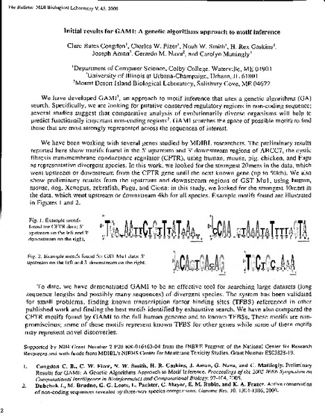 “Initial Results for GAMI: A Genetic Algorithms Approach to Motif Inference,” MDI Biological Laboratory, accessed December 21, 2025, https://digitalarchive.mdibl.org/items/show/2641.Item 12859