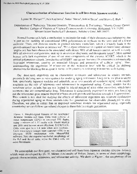 “Characterization of Telomerase Function in Cell Lines from Japanese Medaka,” MDI Biological Laboratory, accessed March 15, 2026, https://digitalarchive.mdibl.org/items/show/2644.Item 12862