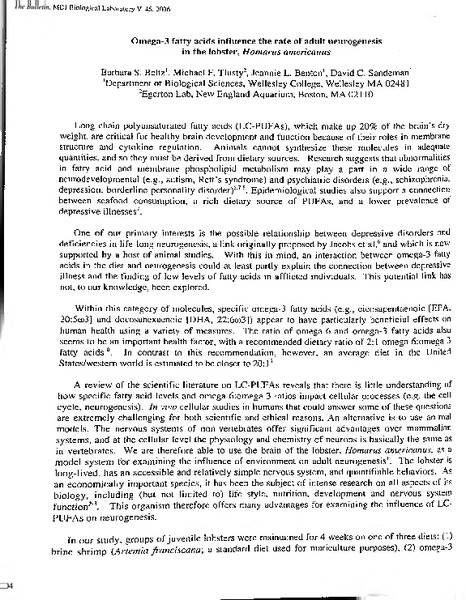 “Omega-3 Fatty Acids Influence the Rate of Adult Neurogenesis in the Lobster, Homarus americanus,” MDI Biological Laboratory, accessed December 20, 2025, https://digitalarchive.mdibl.org/items/show/2664.Item 12882