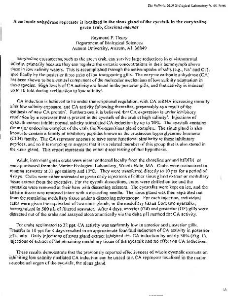 “A Carbonic Anhydrase Repressor is Localized in the Sinus Gland of the Eyestalk in the Euryhaline Green Crab, Carcinus maenas,” MDI Biological Laboratory, accessed January 28, 2026, https://digitalarchive.mdibl.org/items/show/2669.Item 12887