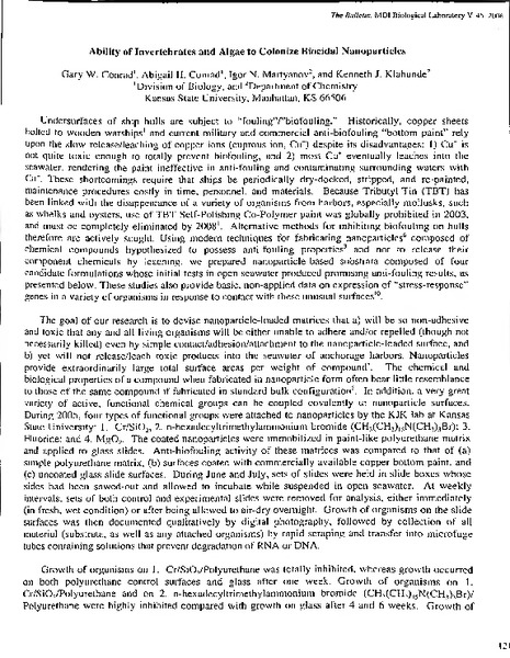 “Ability of Invertebrates and Algae to Colonize Biocidal Nanoparticles,” MDI Biological Laboratory, accessed January 28, 2026, https://digitalarchive.mdibl.org/items/show/2672.Item 12890